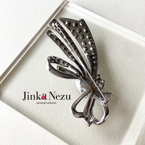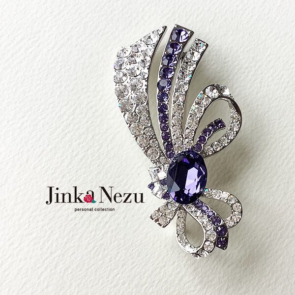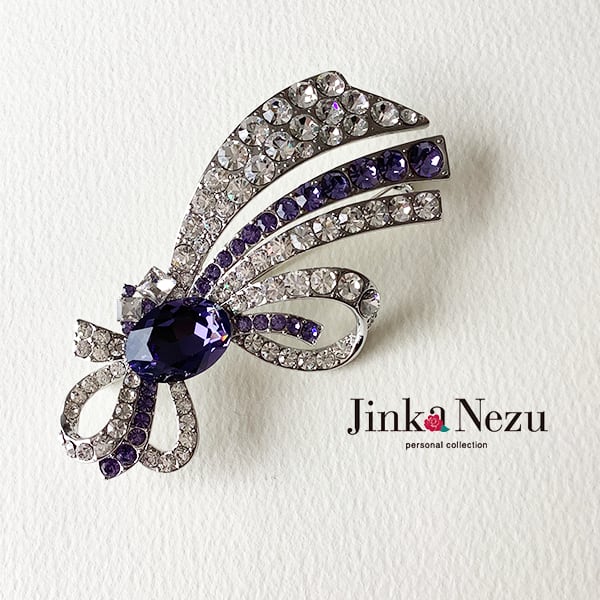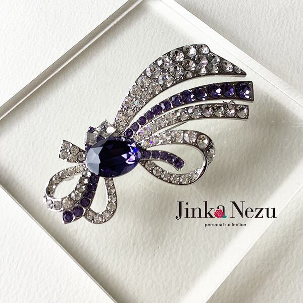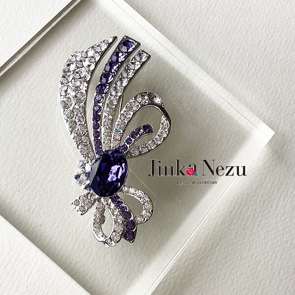 734922 JinkaNezu クリスタルガラス タンザナイトカラー リボンブローチ■
