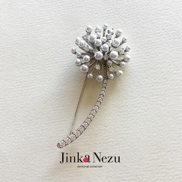 736227 JinkaNezu キュービックジルコニア&ビジューパール フラフィーたんぽぽ ブローチ