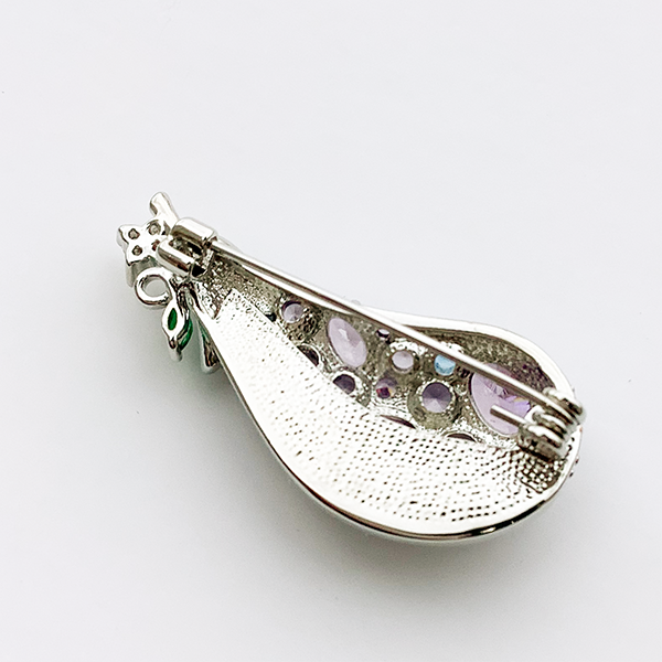 736219 JinkaNezu キュービックジルコニア&シェル なすびブローチ