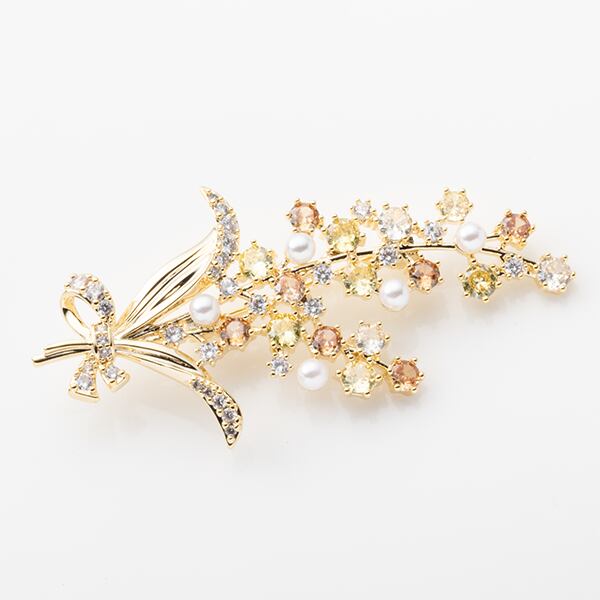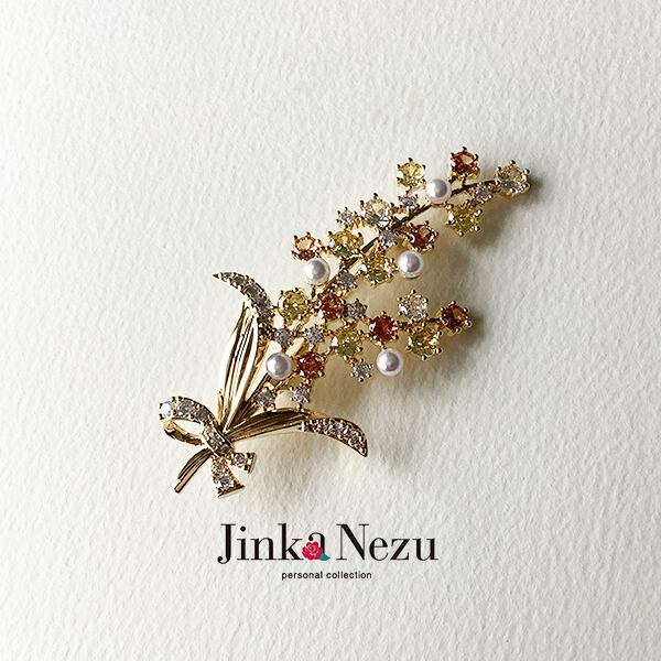 736220 JinkaNezu 薫りに誘われて キュービックジルコニア 金木犀ブローチ