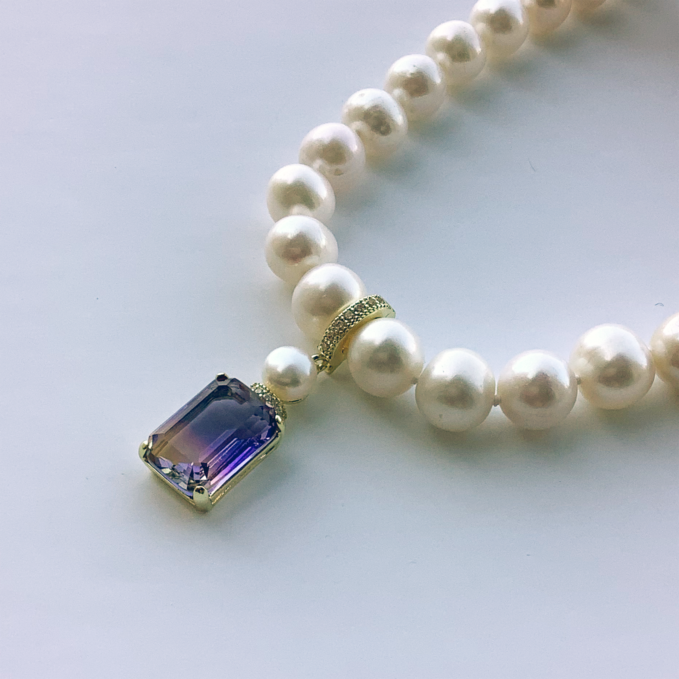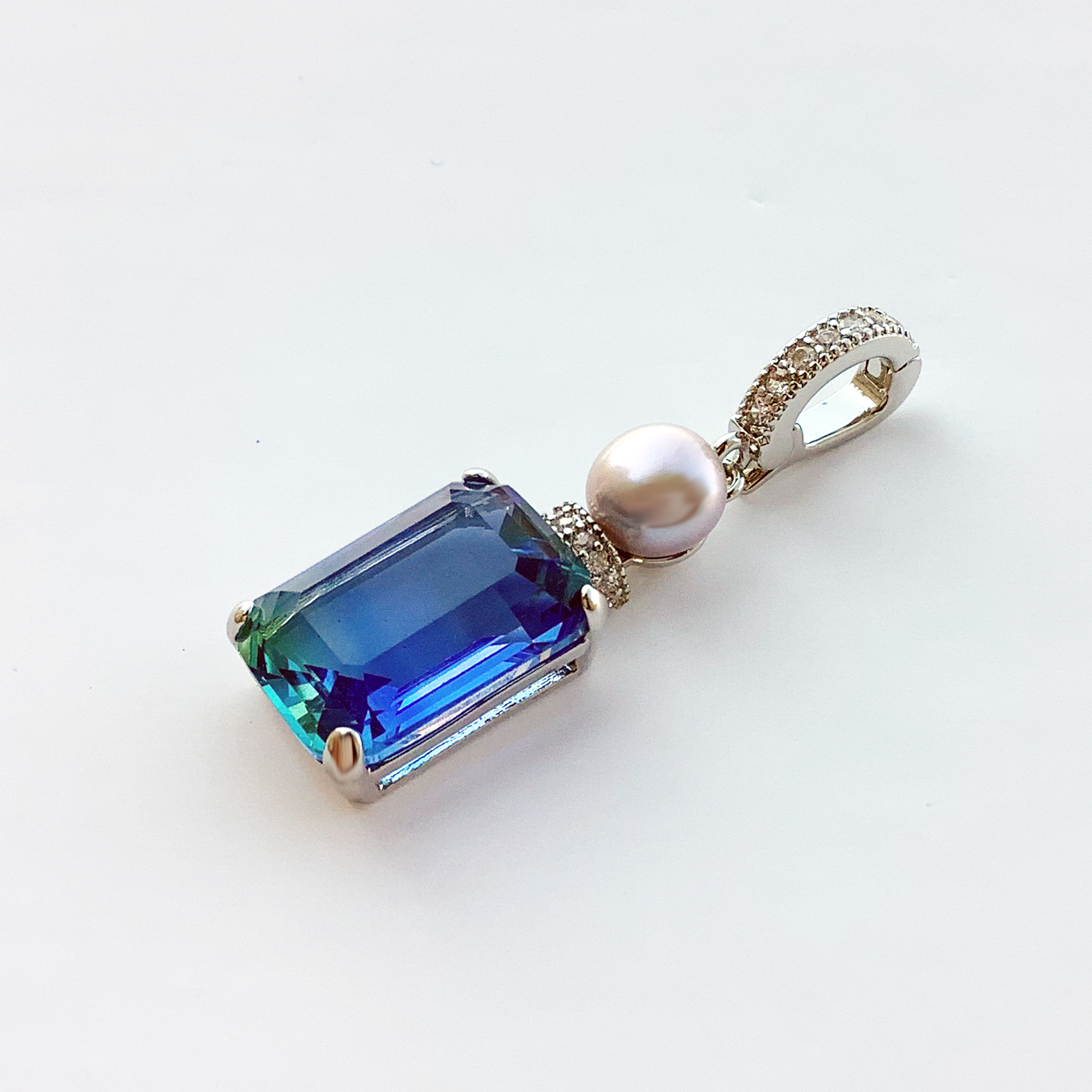 淡水パールを使用したクリッカーチャーム。パフュームボトルをモチーフに、本格的なつくりの大人可愛いチャームに仕上げました