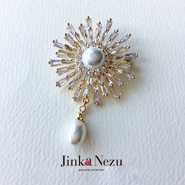 736619 JinkaNezu キュービックジルコニア スパークル ブローチ