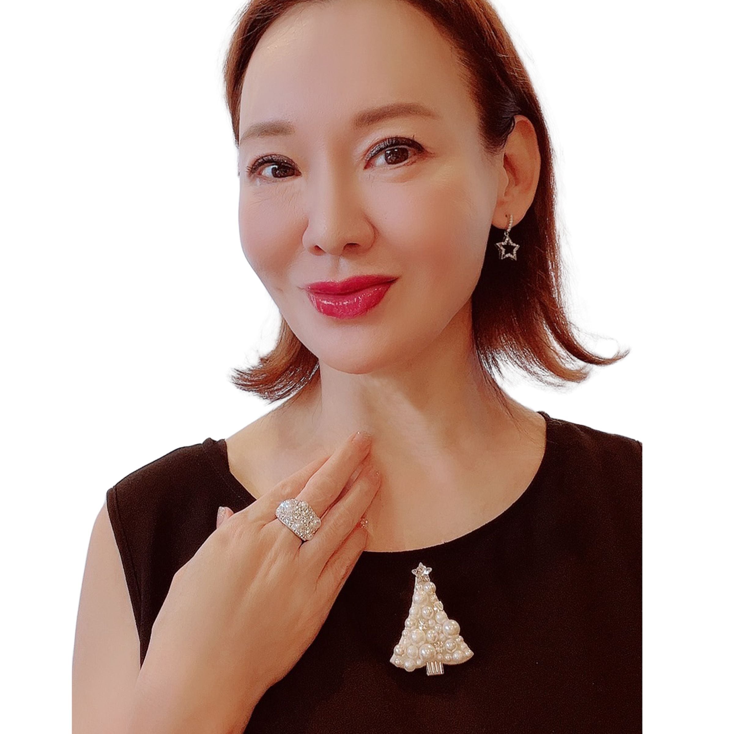 クリスタルガラスの煌めきと樹脂パールの艶感がとても素敵なデザイン。華やかな輝きが、指元を彩ります