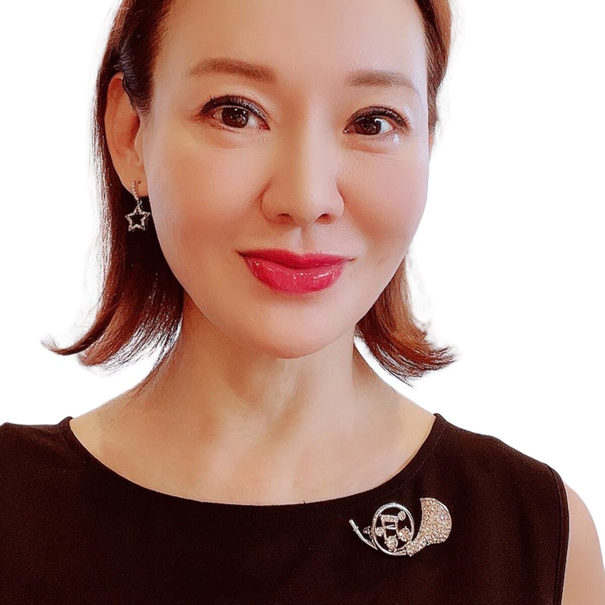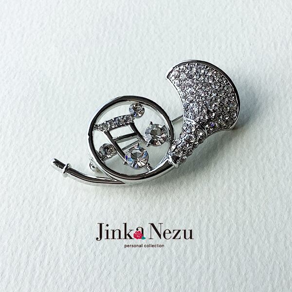 ビジューでホルンの煌めきを表現したブローチ。鏡に映ったホルンをイメージしたデザインで、敢えて逆位置となっています。胸元に添えるだけで、美しい音色が聞こえてきそうなアイテムです