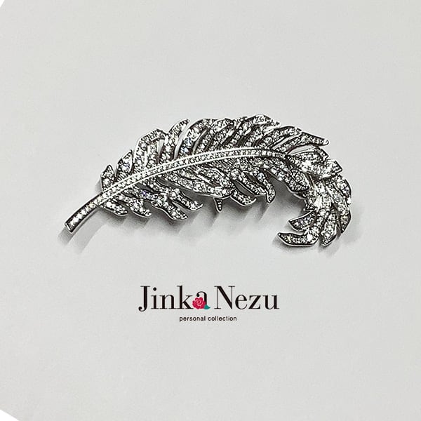 繊細に造り込まれたディテールが美しい羽根モチーフのブローチです。上昇や飛躍などのポジティブな意味を持つ羽根を、エレガントに輝くブローチに仕上げました