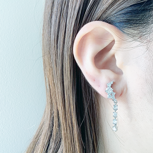 動く度にスイングし、エレガントな煌めきに。縦長に、また耳たぶに沿わせて色々な見え方でお使いいただけます。ファッションに合わせて違う表情をお楽しみください