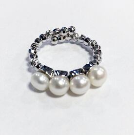 淡水パールを一列に並べたリング。エレガントにもカジュアルにも馴染むデザインで、装いに合わせた表情でお楽しみいただけます