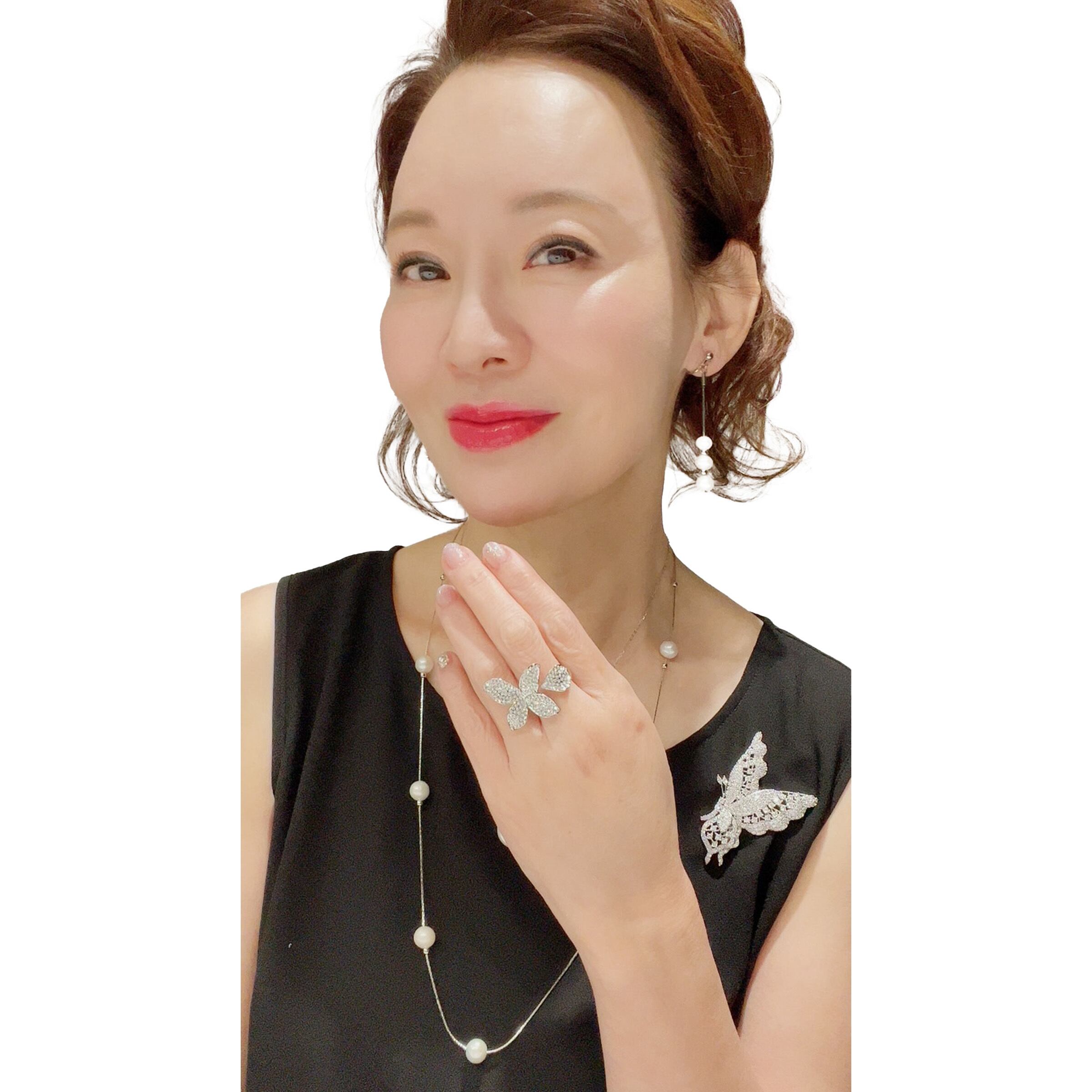 アゲハチョウをモチーフにしたブローチです。繊細なフリルレースのデザインが美しく、胸元に華やかさとエレガンスを添えます