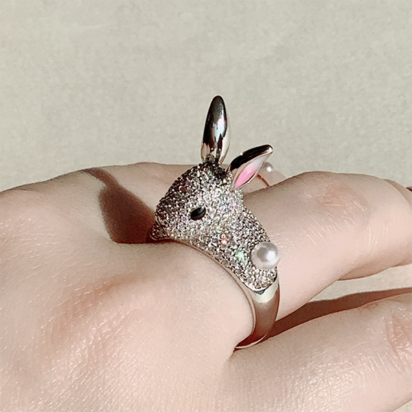 キュービックジルコニアをびっしりと敷き詰めたキラキラのうさぎが、指元からあなたを見つめます。目が合うたびに心ときめく魅力的なリングです