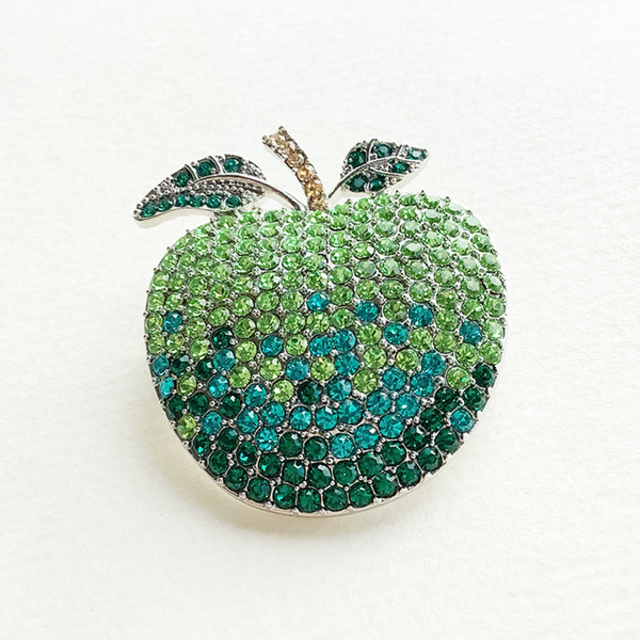 751277 JinkaNezu クリスタルガラス グリーン アップル ブローチ