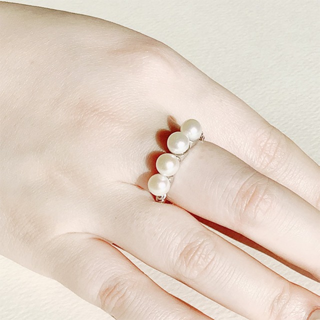 商品詳細 〇淡水パールを4珠使用 淡水パールを一列に並べたリング。エレガントにもカジュアルにも馴染むデザインで、装いに合わせた表情でお楽しみいただけます 〇お好きな指で楽しんで 9〜21号に対応するフリーサイズ。フレキシブルなコイルタイプで様々な指に使え、着用可能サイズに幅があるので、ストレスフリーにお使いいただけます 商品仕様 素材: [淡水パール] 5.5mmUP 不定形 芯立/接着 4珠 最大幅(約) 5.5mm 最小幅(約) 2.5mm 総重量(約) 3.4g [地金] 合金 [メッキ] シルバーカラーメッキ ■フリーサイズ:9〜21号対応 ■素材の大きさ・形・色合い、製品のサイズは1点1点多少異なります ■コイルタイプのリングの為、着用時に引っ掛かったり、強く振ると外れることがありますので、ご注意ください 【中国製】#コイル#2502